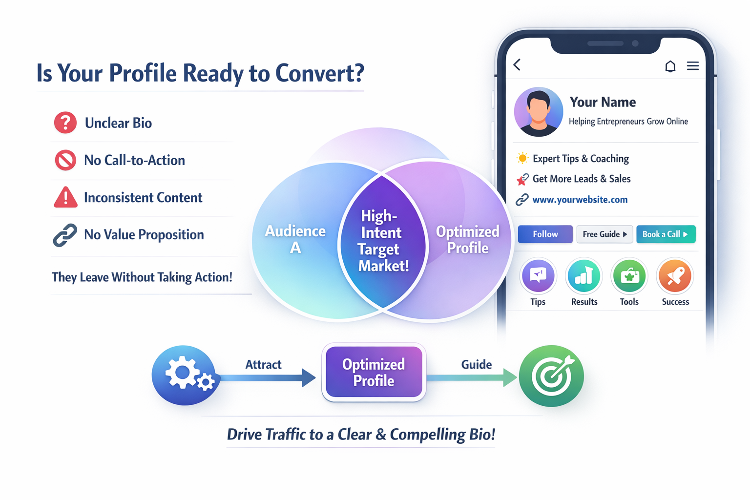 Before scaling automation, ensure that your bio clearly communicates who you help, what you offer, and what action visitors should take. A strong link strategy and consistent messaging are essential.